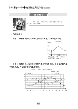 一、 气温的变化 任务 1: 根据右图描述一天中气温的变化情况ꎬ 计算气温日较差ꎮ 任务 2: 根据下图上海和悉尼市的气温年变化曲线图ꎬ 分别描述其气温 年变化特点ꎬ 并分别计算其气温年较差ꎮ 1 1 4