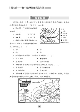 研学区域等高线地形图ꎬ 完成下列 1-4 小题ꎮ