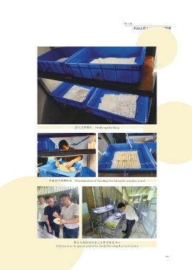 第五章 天台山萤火虫的保护和复育 萤火虫卵孵化 Firefly eggs hatching 养殖盒化蛹期改造 Transformation of breeding box during the pupation period 曹成全教授指导萤火虫繁育研究中心 Professor Cao chengquan guided the Firefly Breeding Research Center 113