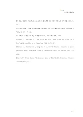 14. 陈斌,曹倍荣,闫振天.萤火虫的分类、生物学特性及保护和利用 [J].大学科普,2020,3: