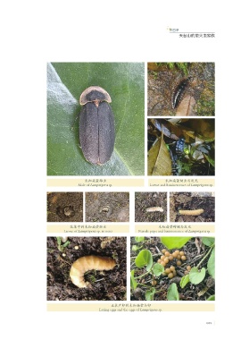 Larvae of Lamprigera sp. in nests Female pupa and luminescence of Lamprigera sp.